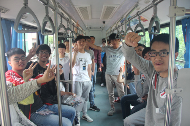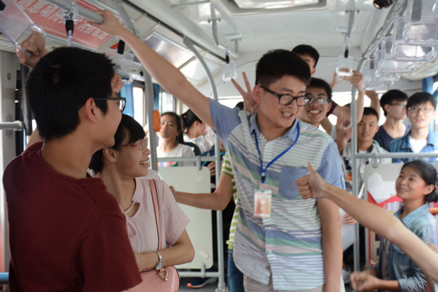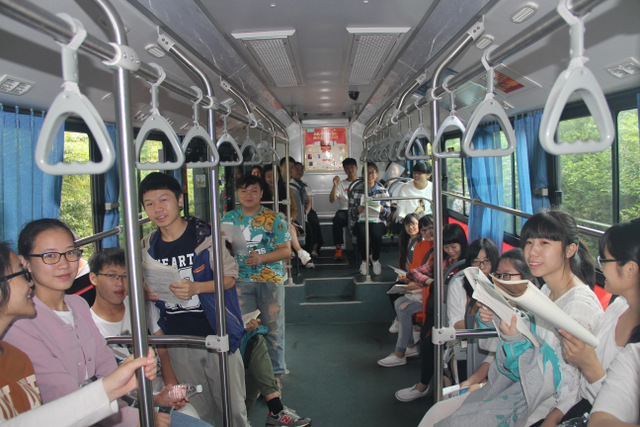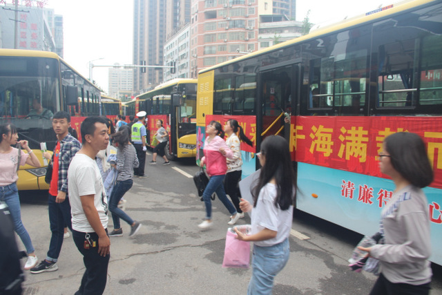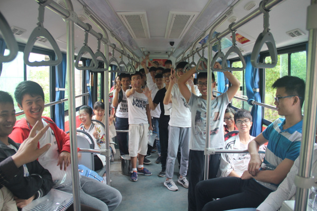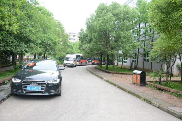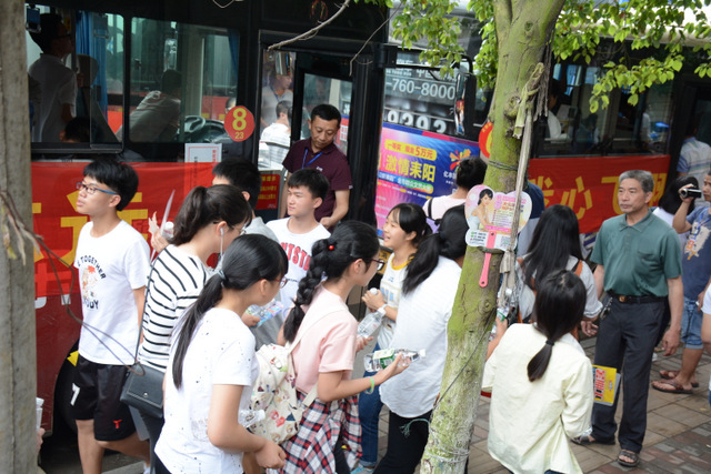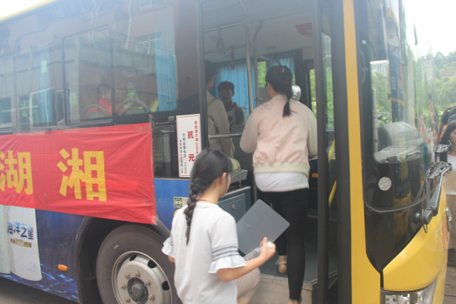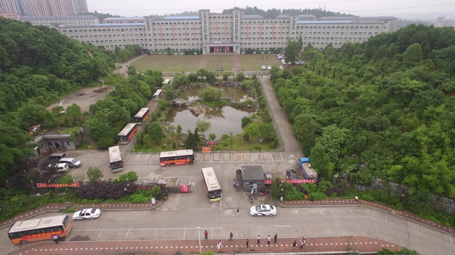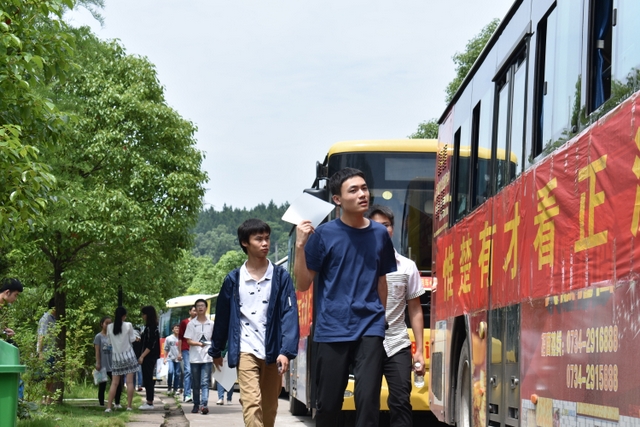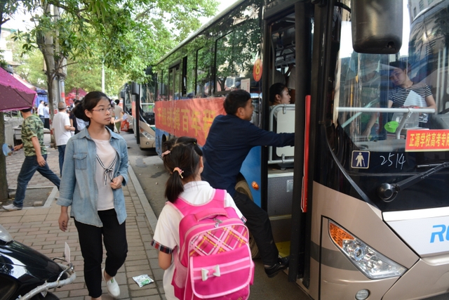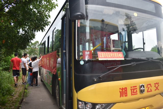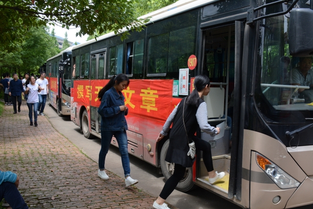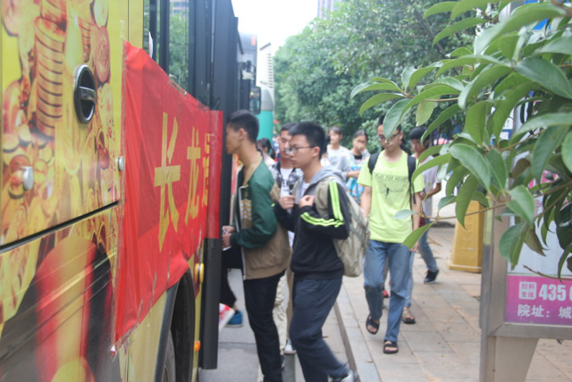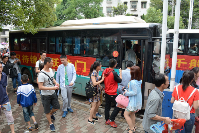 8:08分,在罗校长一号车带领下,由一中考点、二中考点、职高考点等三路43辆车组成的车队,依次从不同的方向,经学校南校门驶出,奔赴考场,同学们脸上洋溢着自信的笑容。