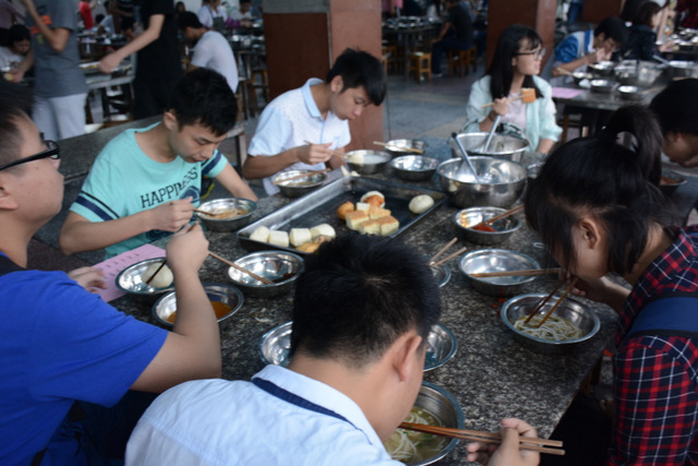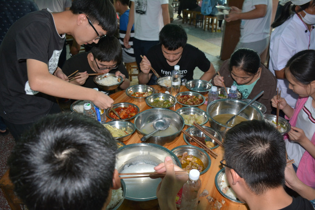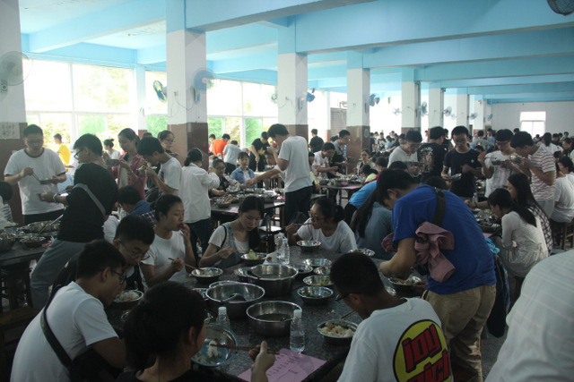 7:10分,同学们津津有味地吃着特制的早餐,为高考充电。