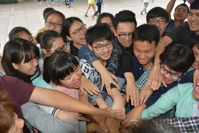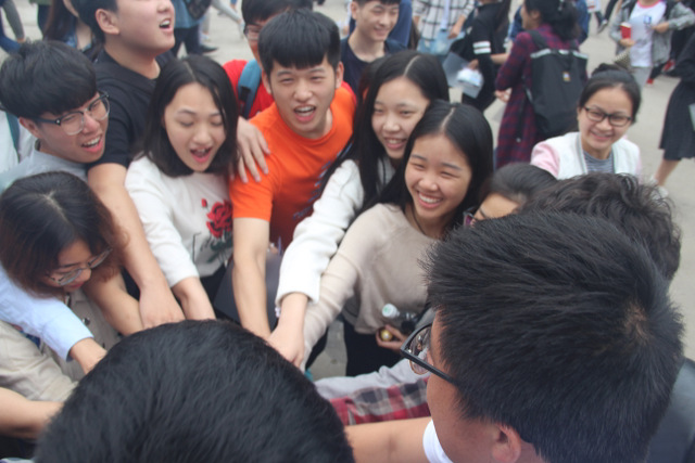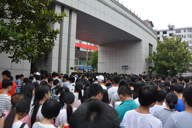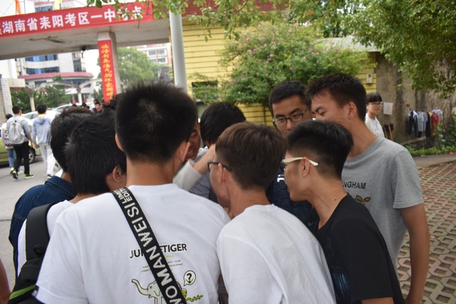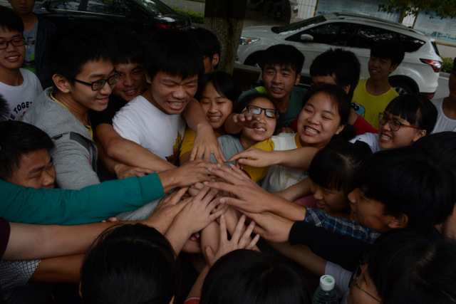 在各个考点,进入考室前,同学们围聚一团,层层叠叠,手托着手,齐呼“加油——加油——加油!”“必胜——必胜——必胜!”,到处充满正源声音,充满正源自信,把别样的正源风貌大写在各考点的上空。