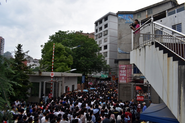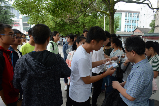 11:30分,第一场考试结束,同学们陆陆续续走出考室,聚集在班主任处上交准考证,没有谁询问考试情况,交流考试答案,评论试题难易,等着打开考点校门,回校吃饭、休息,然后轻装上阵,投入到下一场考试。