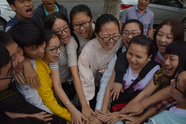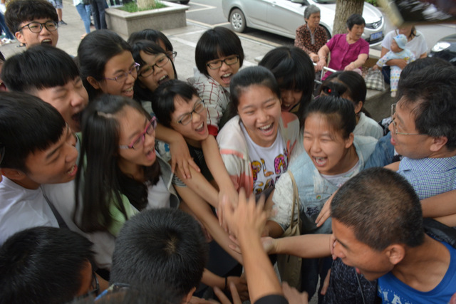 五点半后,三个考点的同学们陆续归来,脸上挂满笑意。