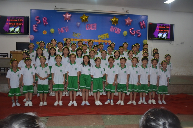 6月4日晚上,凝聚力战斗力极强的四年级在学校报告厅举行了一次精彩的英语课文背诵及表演节目。