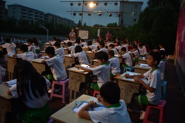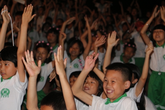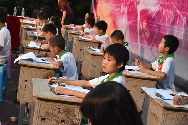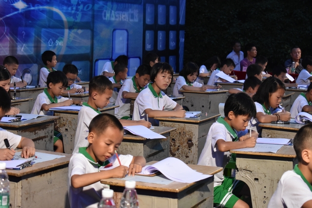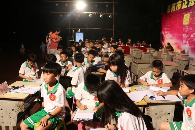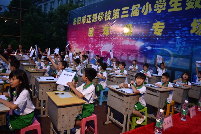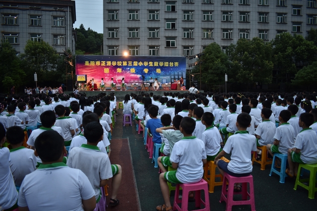 6月13日晚,正源学校小学部第三届数学擂台赛之四年级专场在小学生运动场隆重举行。学校陈副校长、小学部主任罗俊豪、数学教研主任周运根、四年级年级主任王巧云等领导亲临现场。整个运动场上坐满了头戴花环,身穿校服的四年级学生,他们排成整齐的28列,犹如28条巨龙盘坐在操场上,随时等待腾飞!