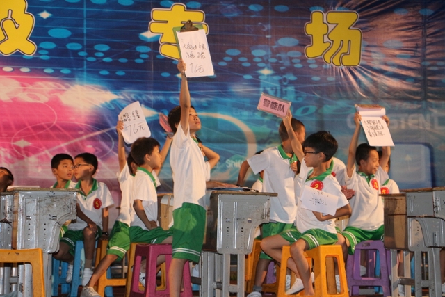 身穿礼服的小主持人闪亮登场,用傲娇的声音宣布比赛开始,7支神采奕奕的代表队霸气登场!他们分别是无敌队、智慧队、智能队、梦之队、阳光队、快乐队、赶超队,他们用自己响亮的口号,霸气宣告——王者归来,今夜我做主!