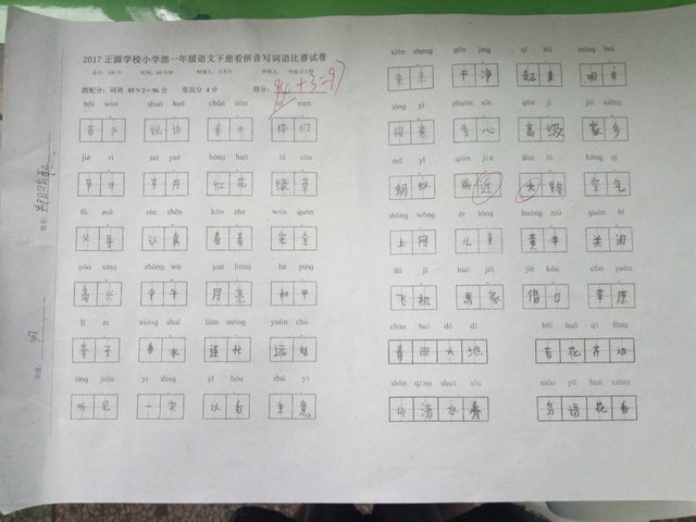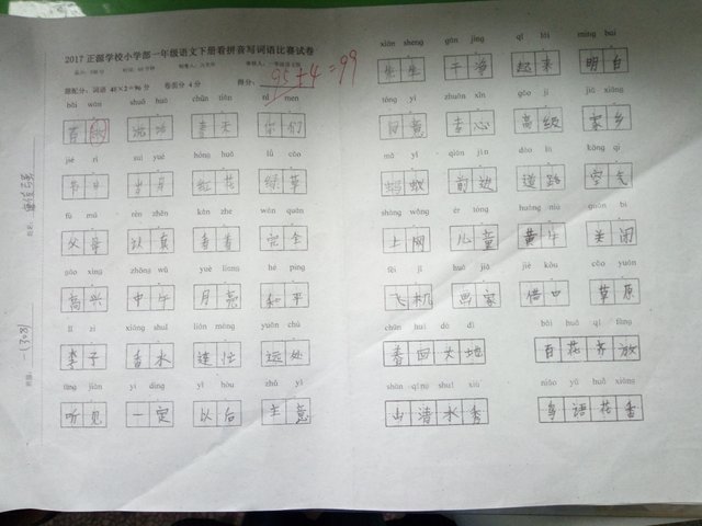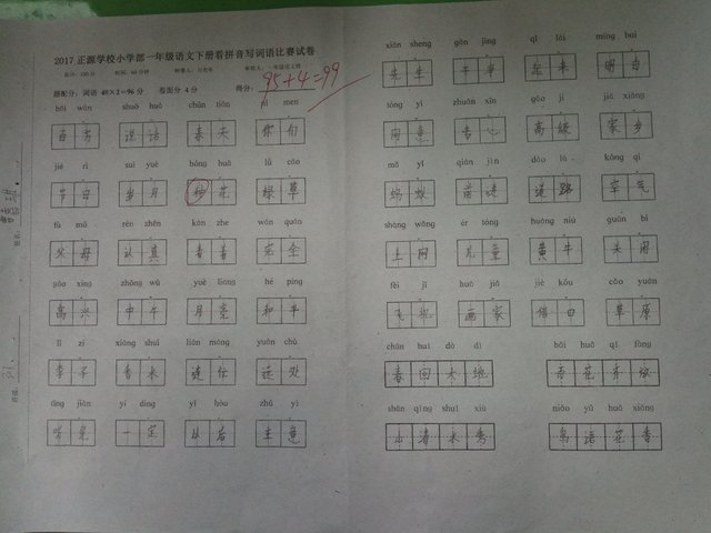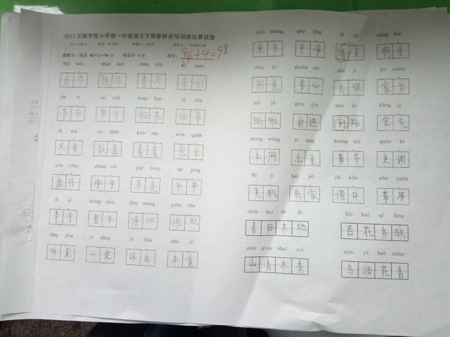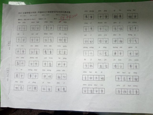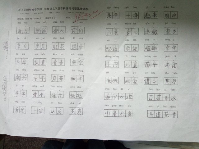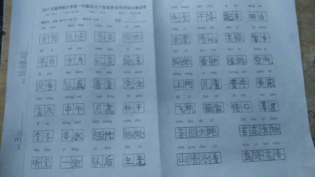 识字教学是小学低年级语文教学的重点之一。为了检查学生本学期拼音、生字词学习情况,促进学生热爱并规范使用汉字,培养学生良好的书写习惯,提高学生书写能力,6月24日晚,小学部一年级语文组特举行了看拼音写词语比赛。
