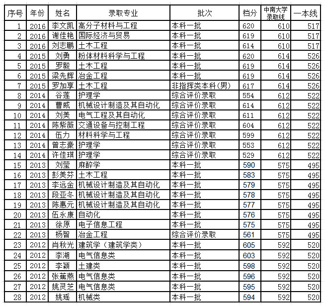 近几年我校被中南大学录取的学生