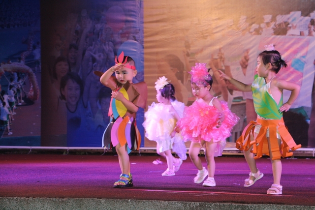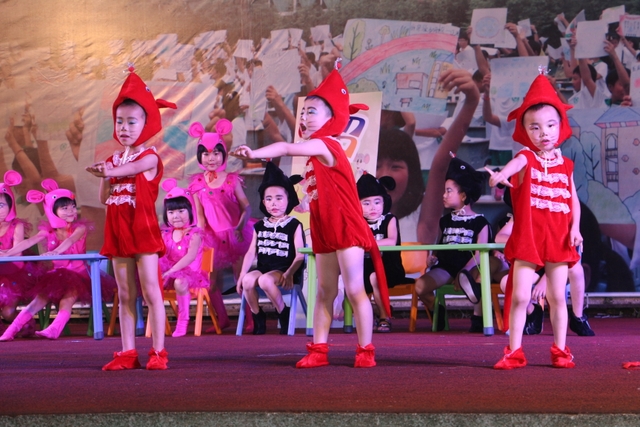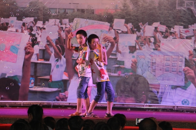 美术组的老师也颇费匠心,DIY作品秀《小手绘童心》将同学们的绘画、书法、手工制作等作品,以走T台和舞蹈的形式,展示给观众,令人眼花缭乱,却惊觉美艳无比:美是最珍贵的享有。更有幼儿园的小朋友表演助兴,或聚精会神,有板有眼,或心不在焉,自行其是,天真烂漫,让人哑然失笑。