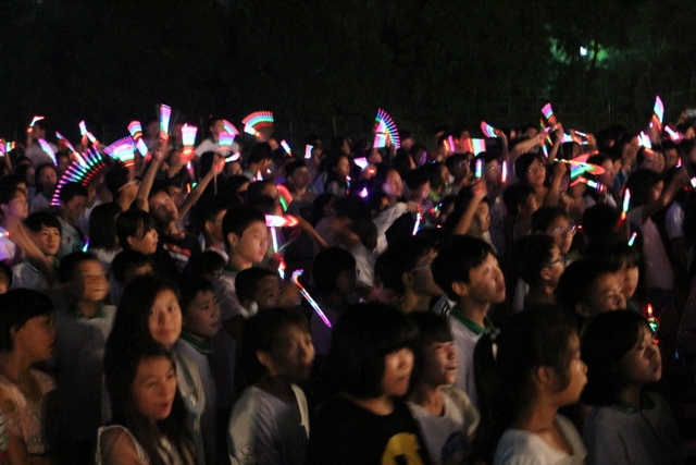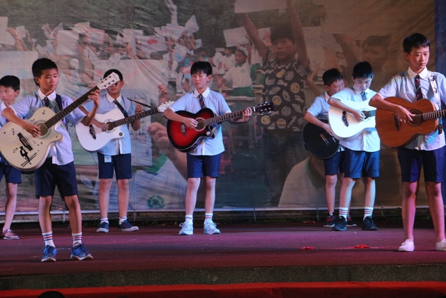 当晚的会场座位排列别致有序,不仅更适合于各个不同方位的同学观看表演,也方便影像人员从不同角度拍照摄像。晚七点过后,小学部全体同学便身着整洁的夏季校服,在划定的区域整齐落座,前来观看自己孩子演出的家长络绎不绝,也在指定区域位置就坐。