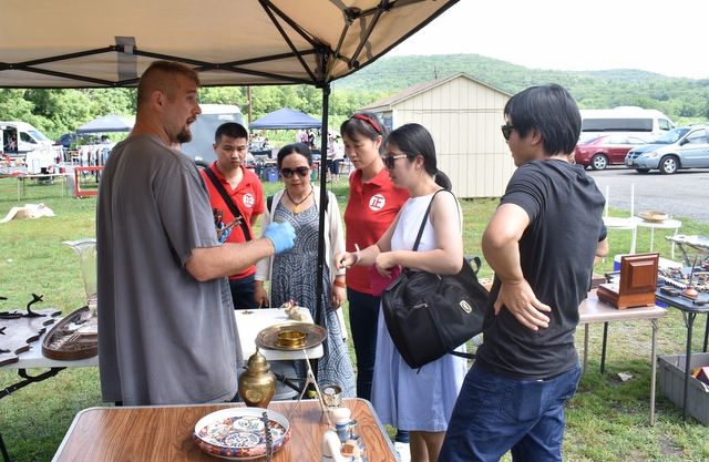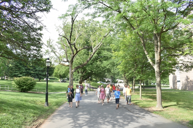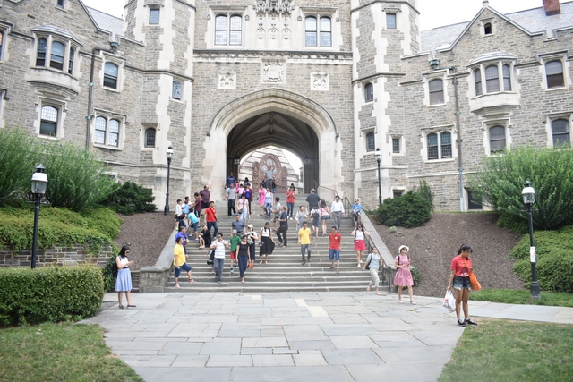 2017年7月8日,早晨吃完丰盛的早餐后,校长给大家开了一个短会,对今天的行程和注意事项等进行了说明。10:50,在校长的带领下开启了今天愉快的旅程。车行进在平坦的马路上,车上的我们欣赏着沿途美丽的风景。11点左右,到达今日的首站——美国“跳蚤市场”,每个人热情高涨地走入市场,渴望淘到自己喜欢的宝贝。中午时分到达今日旅程的第二站―美国正源桑梓楼。来到这里,老师们有一种回到家的感觉,“我的地盘我做主”。校长的女儿女婿带领老师们参观了高大上的桑梓楼的里里外外。中餐之后,老师们一行继续前行,参观普林斯顿大学。这所世界著名的高校,美丽的景致和哥特式建筑艺术令人惊叹,有趣的是一些老师和孩子们经不住水的诱惑,在“十二生肖”铜像前的喷泉池里与当地人一起戏水,好不愉悦与惬意!