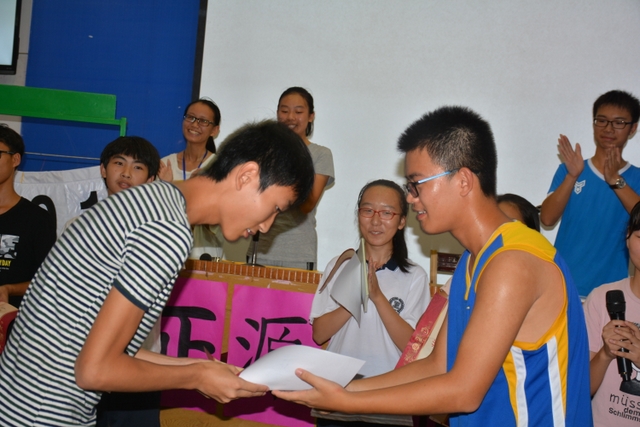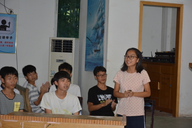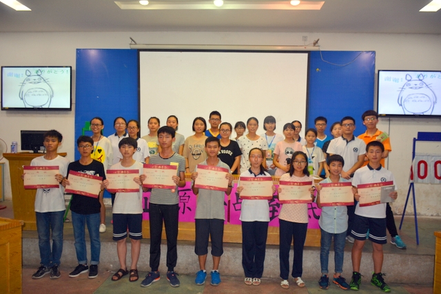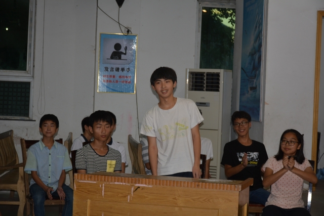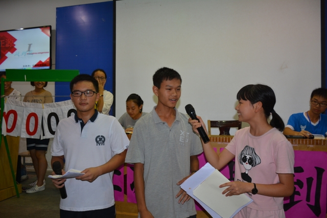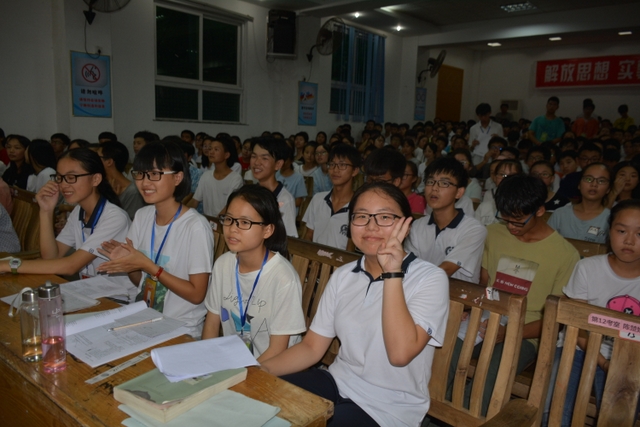 本次决赛的8名选手是经过初赛和复赛两轮淘汰挑选出来的。7月9号、10号两场初赛,从近300名高一、高二学生中通过笔试选拔16人进入复赛;通过7月15号复赛一对一现场回答问题比拼淘汰,16人又只剩下8人进入决赛;最后通过8人在决赛中一对一捉对撕杀,最终产生了冠、亚、季军。最后,同学们在纪律部同学的组织下有序退场。