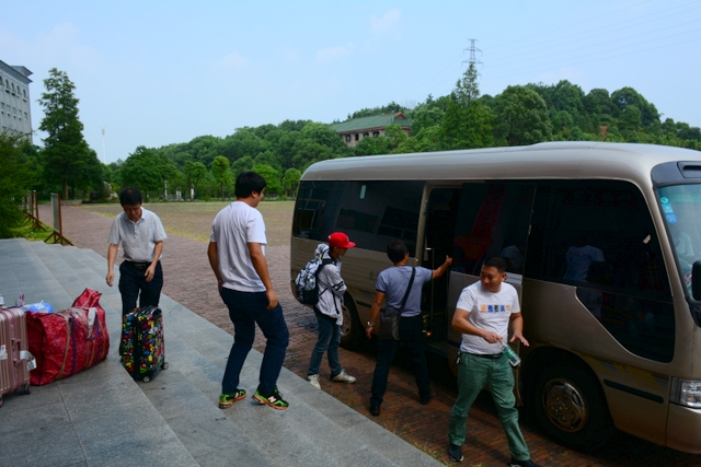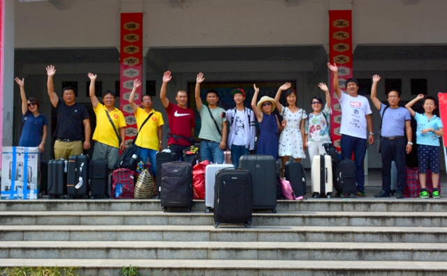下午3点,载着正源学校赴美教育考察团一行人的学校校车缓缓驶进校园, 受到学校同事的热烈欢迎。车门一开, 车内车外欢呼一片。 车内人秩序井然递着行李, 车外人热情爽朗接着搬运行车, 充分体现了正源学校大家庭的温暖。搬完行李下完车, 一行人排成一排合影留念。 大家振臂高呼: “祖国, 我们回来了! 正源, 我们回来了!”