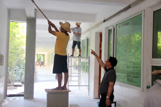 为抢抓工时,既加班加点争分夺秒抢进度,又科学规划合理将高三教室先安排,同时又要保证工程质量。贺国洪主任介绍,不仅仅工程部的同志咬紧质量不放松加强监工不松劲,就是暑假在校主持工作的陈副校长也时时挂念工程质量,经常深入一线查质量问进度,要求充分利用暑假期间粉刷好教室寝室并装修教师公租房, 确保以崭新的面貌迎接师生顺利开学。