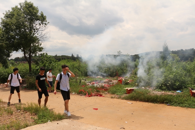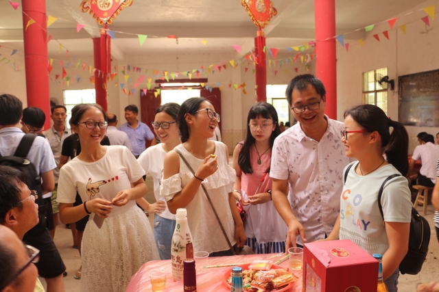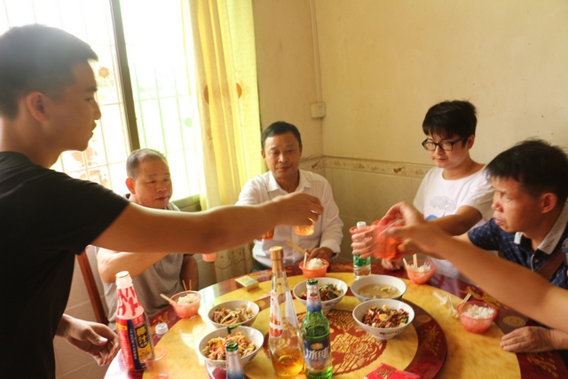 8月13日,新市镇横龙村,鞭炮齐鸣,礼炮冲天,一派热烈的喜庆气氛,正源学校高82班班主任曾晓晖等一行人驱车前来祝贺贺鑫同学考上广东工业大学。