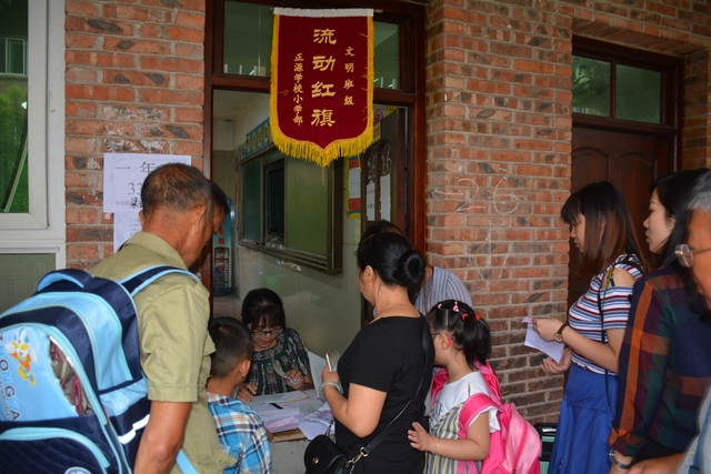 上午7点30分,学生在家长的护送下陆续进入正源学校小学部报到。进入学校,学生、家长摩肩接踵,一派热闹繁忙景象。每栋楼的入口处都有老师在热情接受咨询,分班信息及其它注意事项等贴在宣传栏内一目了然。在各个教室,报到、缴费、注册等各项流程紧张有序,忙而不乱。寝室的楼栋入口处,披着志愿者绶带的生活老师热情服务;进入寝室,看到床上及其他日常生活用品井然有序,地上打扫得一尘不染,陪同的父母相当满意。今天报到的学生虽然都是新生,由于学校于8月26号召开了政府购买学位学生、家长座谈会,对政府购买学位政策及结合本校实际出台的有关规定作了具体解释说明,今天报到时加快了工作进度。至上午11点,各年级新生办完了一切手续,全部到教室上课。