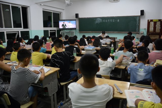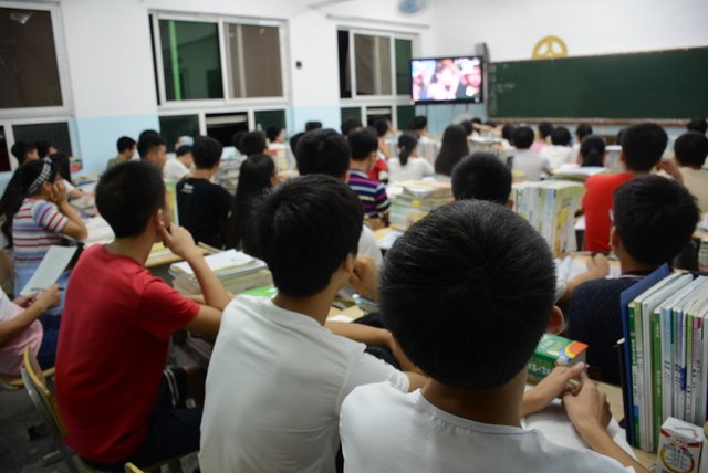 9月3日晚上7点, 我校小学、初中、高中三个学部15000多名学生,集中在各个教室,认真组织收看学校电视台录制的CCTV1播出的《开学第一课》。