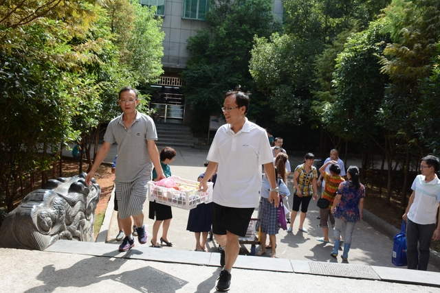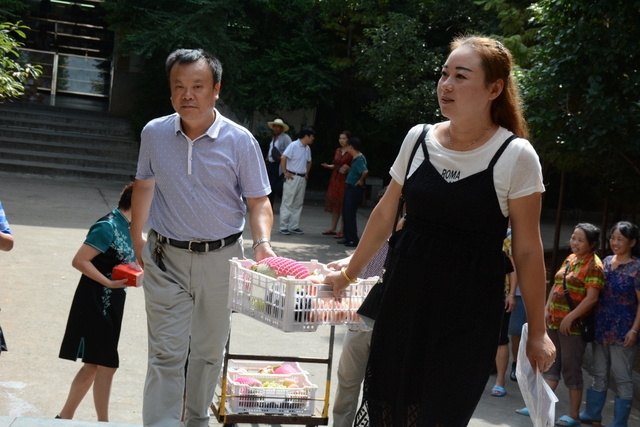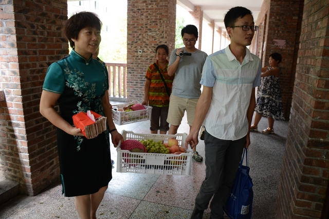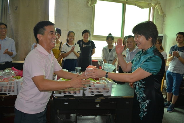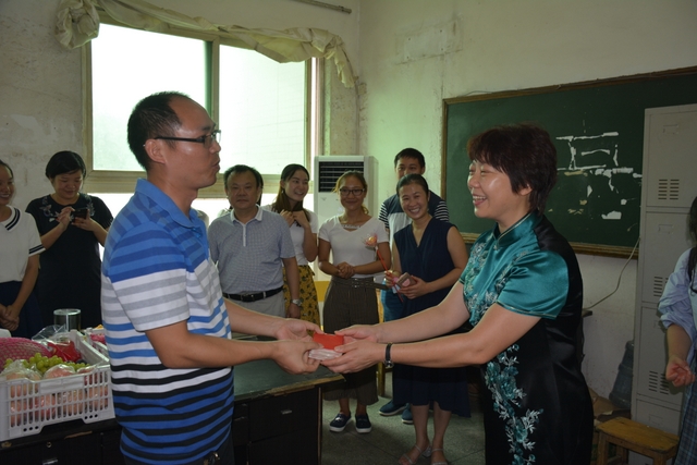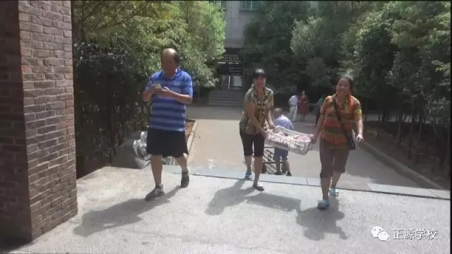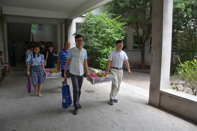 校领导带领工作人员,抬着慰问品揣着慰问金来了