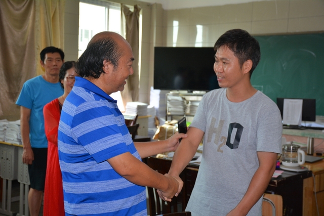 准高一年级主任曾晓辉、年级分管领导王大昌、王伟荣,作为2017年高考耒阳市理科状元、衡阳市第三名、被北京大学录取的黄利的任课老师,获得了“衡阳市教学质量突出贡献奖”,同另外三位获奖老师赴衡阳市参加衡阳市颁奖盛典,年级副主任刘志鹏代表年级接过了学校的慰问金。