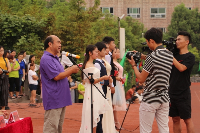 在主席台上就坐的还有:学校党支部书记毛小波、财务总监梁晓芬,初中部主任曾良古、小学部主任罗俊豪,高三至准初一各年级主任毛小波(兼)、陈斌、王小灿、曾晓辉、唐循南、倪南辉、徐作耘、曹秋文。