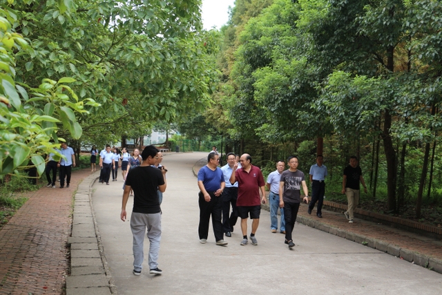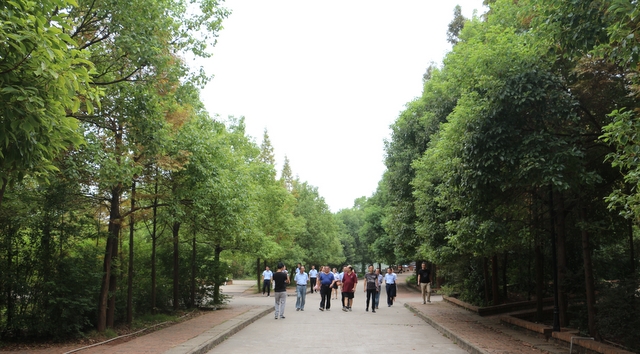 宾主走在学校林荫大道