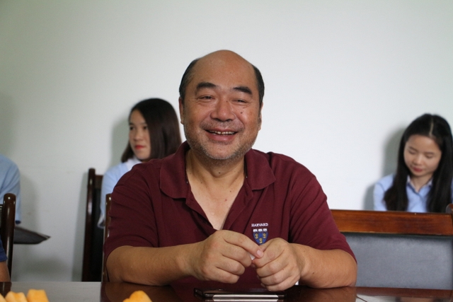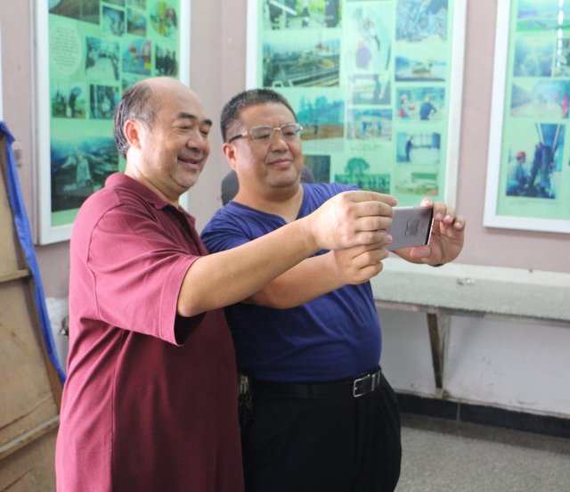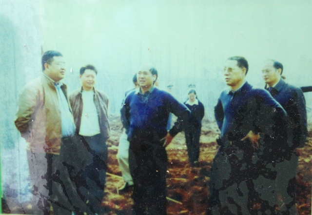 展示在学校图书室里李董事长早年来学校的旧照片