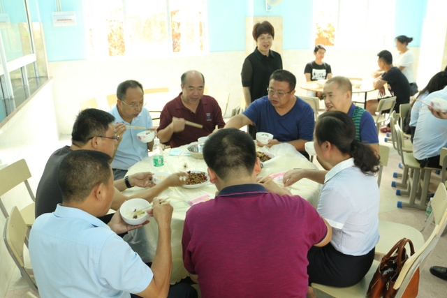 中午时分,罗校长在食堂宴请李董事长一行品尝正源绿色土菜。