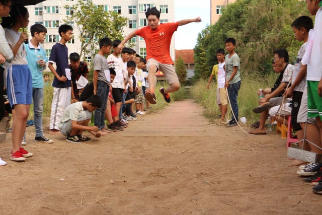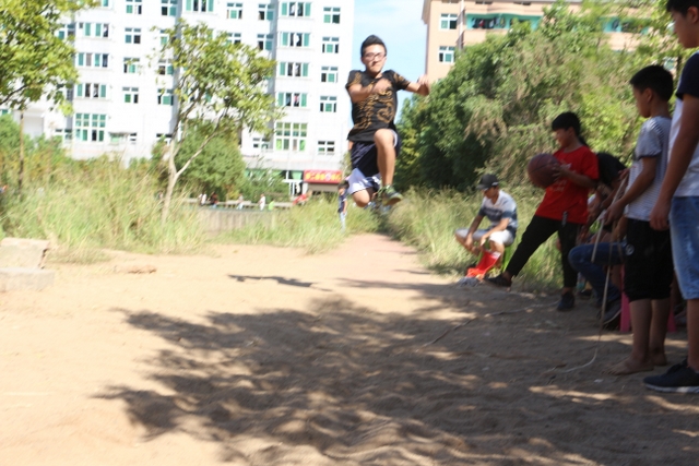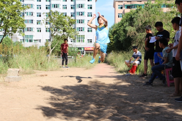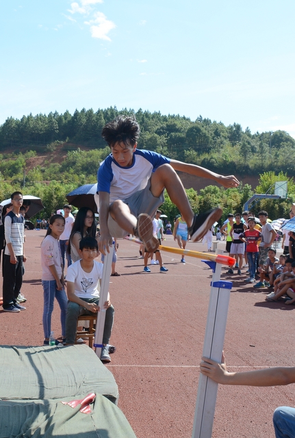 喜报(1)!初一男子跳远比赛,313班肖思颂同学打破纪录,再创佳绩。