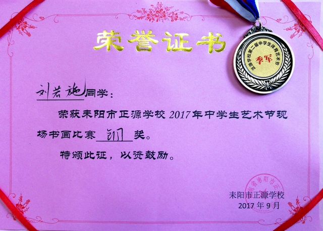 正源学校第二届中学生体育艺术节现场书画比赛获奖名单