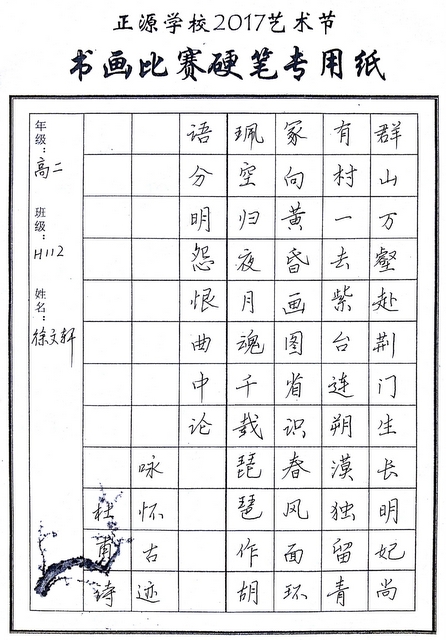| 3 | 高二 | 112 | 徐文轩 | 硬笔 |