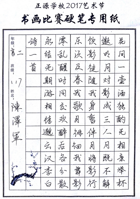 | 1 | 高二 | 117 | 陈泽军 | 硬笔 |