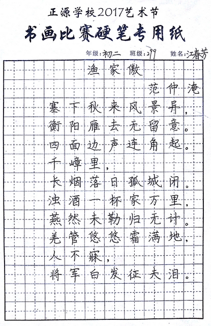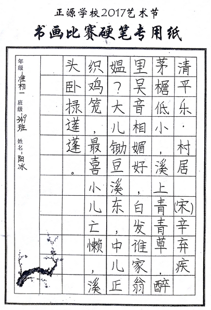 | 34 | 初一 | 315 | 徐慧芳 | 硬笔 |