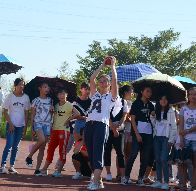 喜报(2)!初二女子实心球比赛,281班刘紫溪同学打破纪录,再创佳绩。