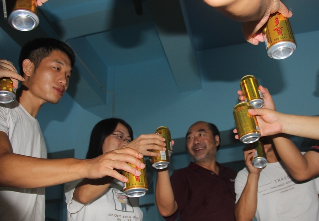 罗校长以饮料代酒,祝贺体艺节取得圆满成功