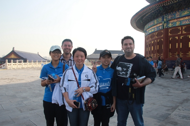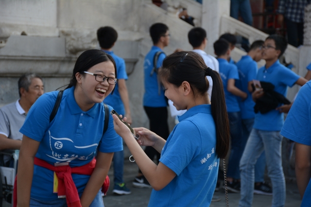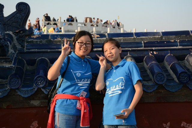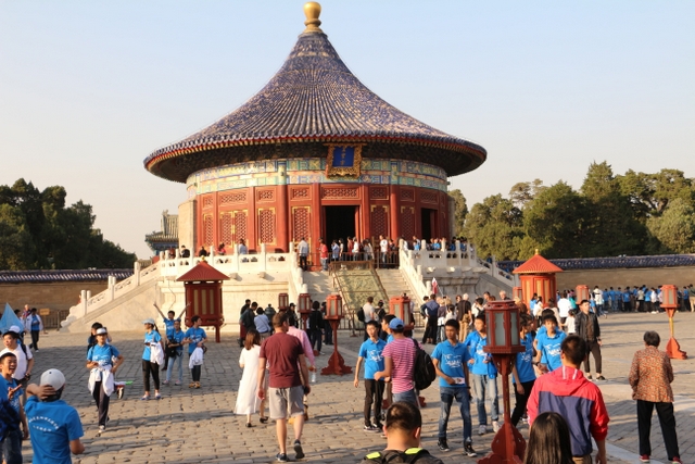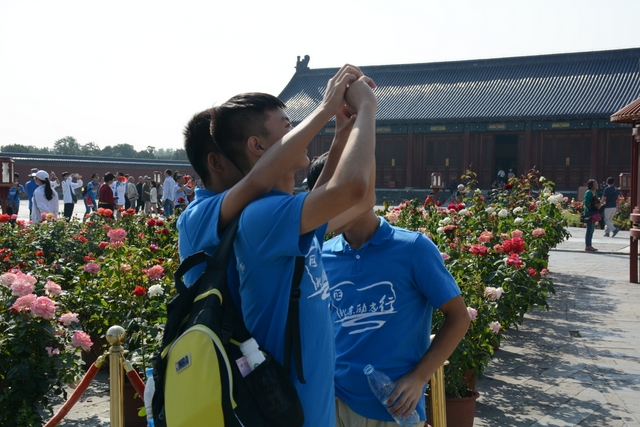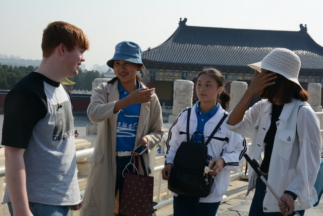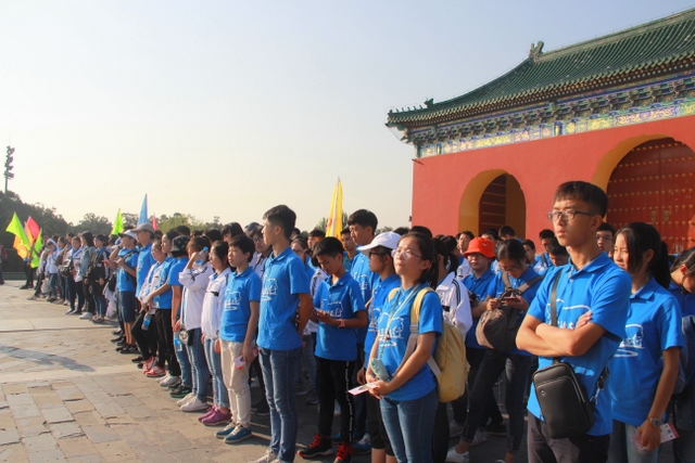 在天坛公园内,励志行团队按照既定路线,游览了祈年殿、皇穹宇、回音壁、圜丘等景点。在园内,学生们积极与各国游客交流,介绍家乡耒阳,并通过外国友人了解各国的风土人情。