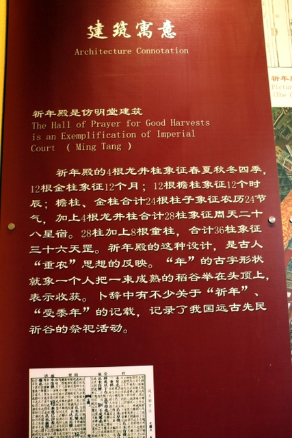天坛始建于明永乐十八年(1420年),为明、清两代帝王祭祀皇天、祈五谷丰登之场所。天坛是圜丘、祈谷两坛的总称,有坛墙两重,形成内外坛,坛墙南方北圆,象征天圆地方。主要建筑在内坛,圜丘坛在南、祈谷坛在北,二坛同在一条南北轴线上,中间有墙相隔。圜丘坛内主要建筑有圜丘坛、皇穹宇等等,祈谷坛内主要建筑有祈年殿、皇乾殿、祈年门等。