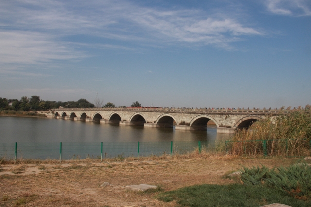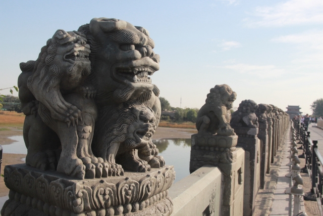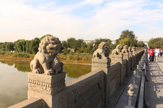 卢沟桥亦称芦沟桥,是北京市现存最古老的石造拱桥,两侧石雕护栏各有140条望柱,柱头上均雕有石狮,形态各异。1937年7月7日,日本帝国主义在此发动全面侵华战争,宛平城的中国驻军奋起抵抗,史称"卢沟桥事变"(亦称"七七事变")。