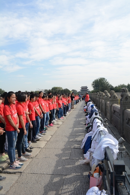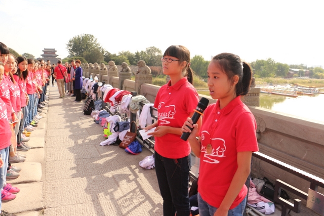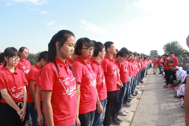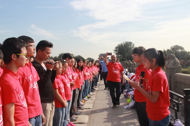 与李晓波一样正源学校2017年北京励志行团队中的许多人心中家国情怀被点燃了,"勿忘国耻,勤学报国,兴我正源,爱我中华!"整齐的呼号声在卢沟桥上空回荡。当天上午,励志行团队来到"七七事变"事发地卢沟桥及中国人民抗日战争纪念馆参观,以铭记历史,不忘国耻。