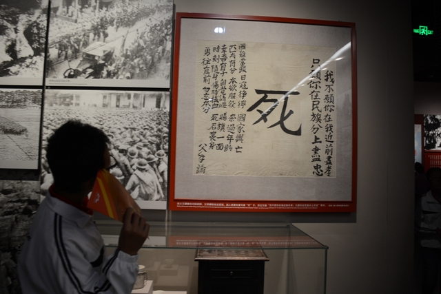 "参观完卢沟桥和中国人民抗日战争纪念馆后,我决定将来要报考军校。"10月4日,在中国人民抗日战争纪念馆前,1714班李晓波说出了自己将来的打算。他说,男儿当自强,我们应该努力学习,报效祖国。当兵是他认为报效祖国最佳途径。