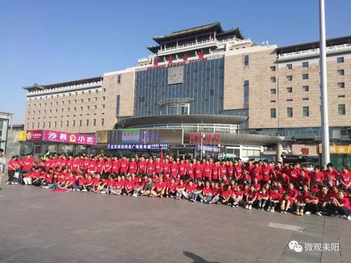 29日早上8点,列车到达北京西站。天际间高楼大厦的轮廓,地面车水马龙的街景,在晨曦中映入眼目 。“北京,我们来了!耶!”励志大军在车站广场留下第一张合影。