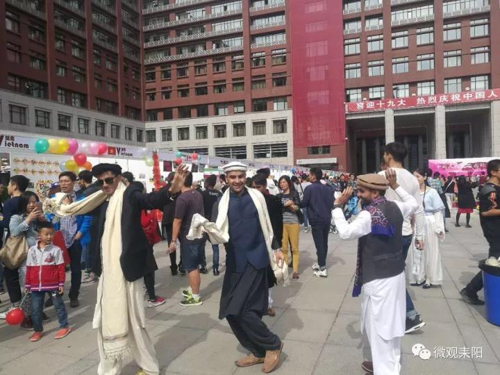 运气真不错,正赶上80周年校庆。校园内人来人往,络绎不绝。同学们在喜庆的气氛中随着人群到处参观。在明德楼前面的广场,这里正举办了一个国际文化节,在人大求学的各国留学生,把自己国家的文化淋漓尽致地向游客进行展示,整个广场散发着浓烈的异国风情。