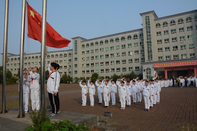 升旗仪式隆重而催人奋进,激励五年级和二年级全体师生以更加积极的心态,良好的行为,全身心地投入到工作和学习中。