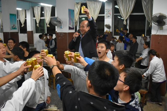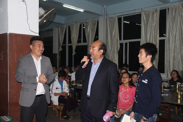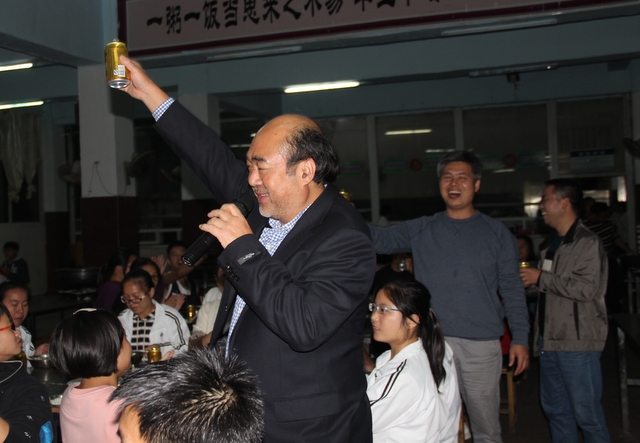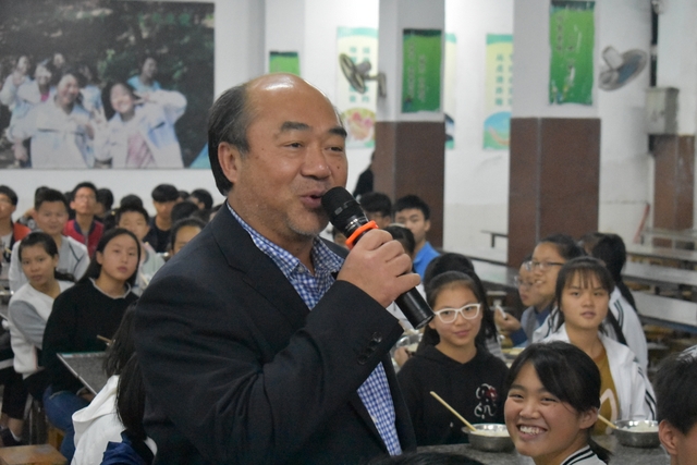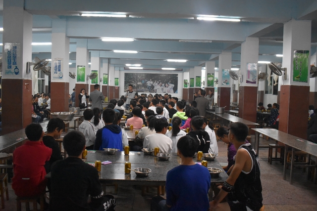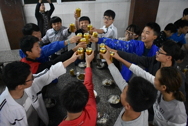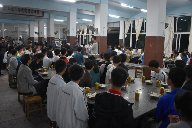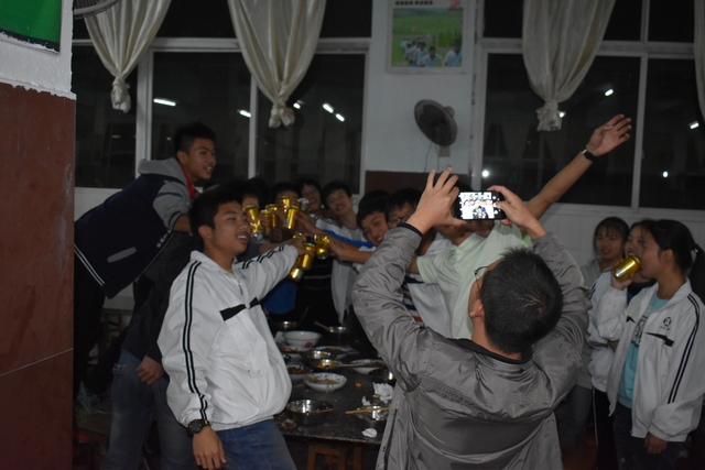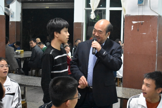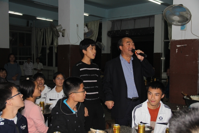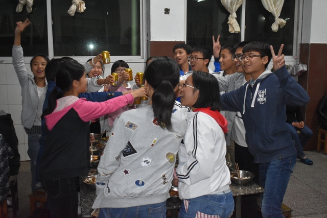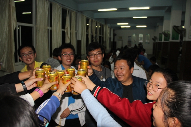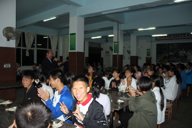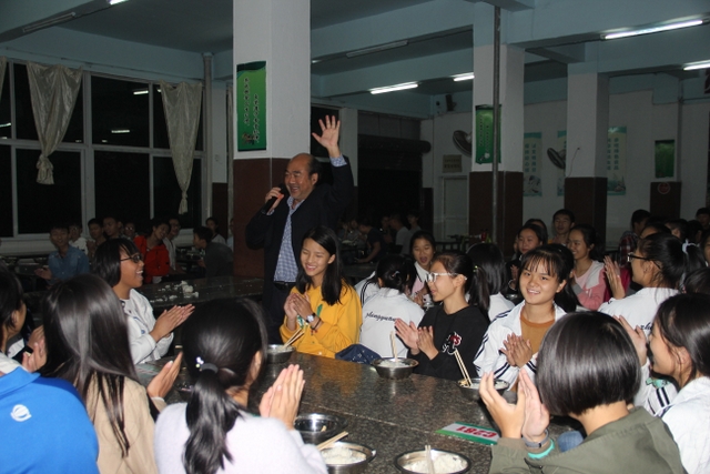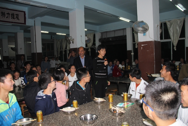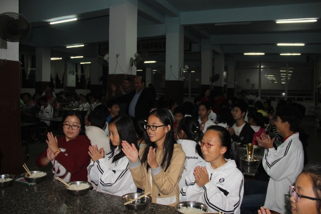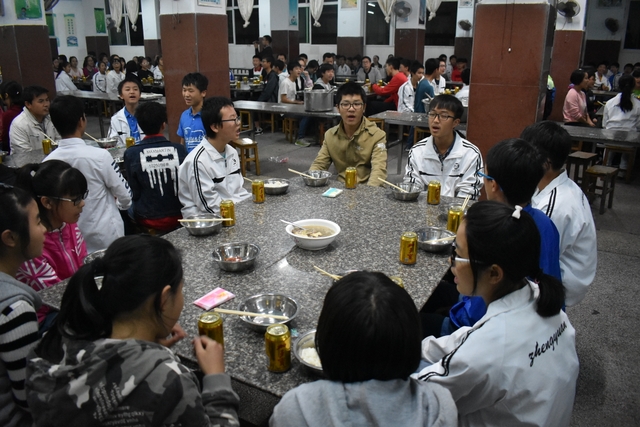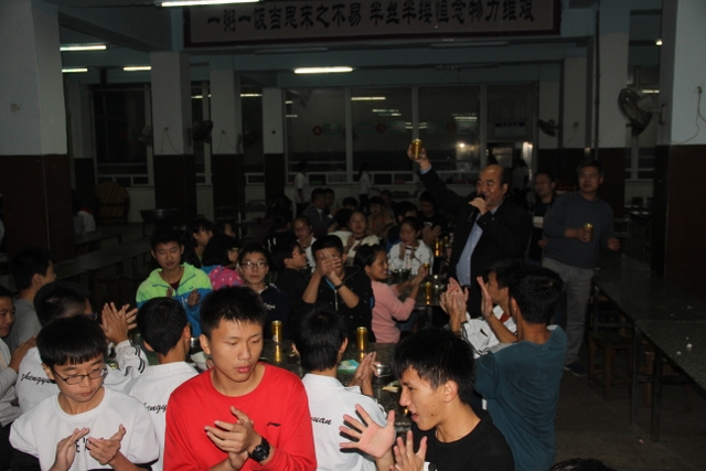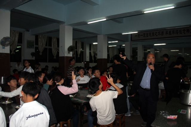 在北京励志行程中,恰逢国庆、中秋双节相会,罗校长许诺,请同学们吃顿饭。但因为行程安排紧凑,人数众多,在北京组织大型聚餐未能实现。为此,校长决定,抓住十月的尾巴,和同学们到学校食堂聚一聚。