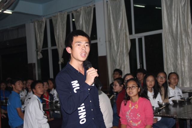 高一年级主任王小灿说:我们高一年级要做就做最好,我们高一年级老师最美丽。同时邀请了学生代表王燕姿同学发言,王同学深情感谢校长及每一位老师,并带领同学们齐唱《最美的你》。