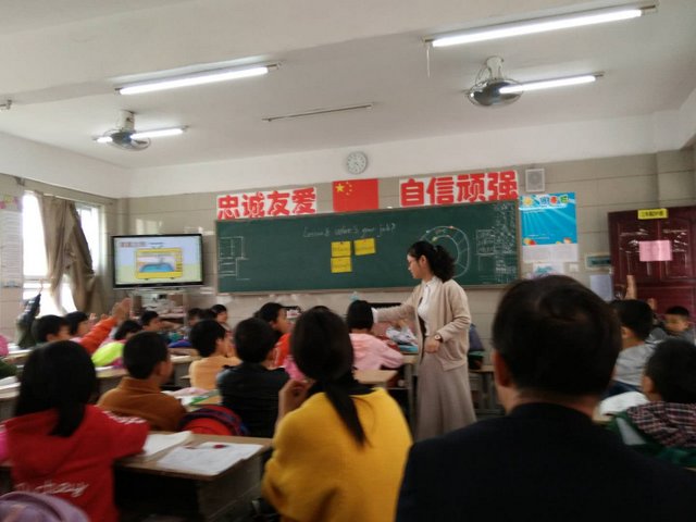 肖艳萍老师的课题是‘What’s your job?’。肖老师准备充分,PPT制作精美。 PPT插入动画,让孩子们大胆想象他们所从事的职业。这样的英语课堂不仅让孩子们学习了英语,并且培养了孩子们爱想象、敢表现的个性。