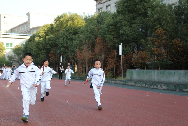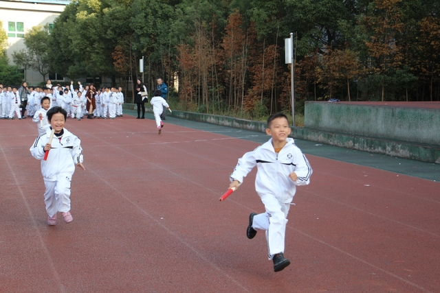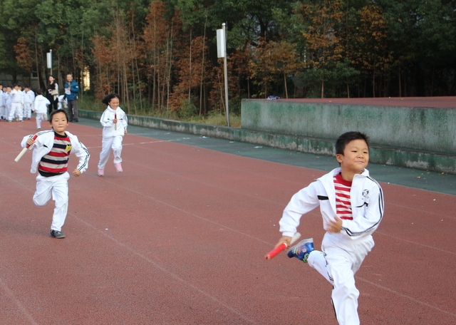 此次比赛,以班级为单位,抽签决定比赛顺序,分两轮进行。在年级主任徐莉的精心策划下,活动组织得力,整个赛事井然有序。赛前,体育老师利用体育课经常进行训练,极大提高了比赛时孩子们的跑步速度与配合的默契度。比赛时,裁判员一声令响,身着白色校服的小运动员们像一个个小精灵,手持一根小小的、连接着团结和友爱、传递着勇气和力量的木棍,飞奔在跑道上,个个英姿飒爽。特别是啦啦队们不分你我,为所有参赛的班级呐喊助威。他们的呐喊震撼了你我他,牵动着你我他。经过激烈角逐,成绩当场揭晓: