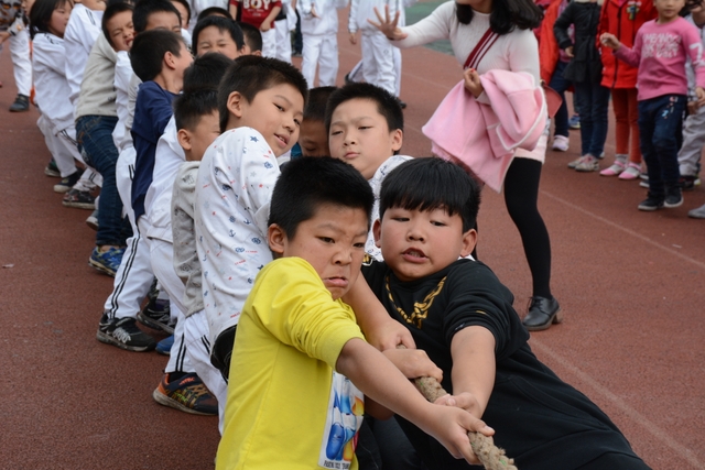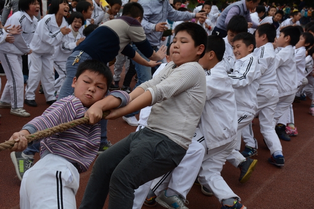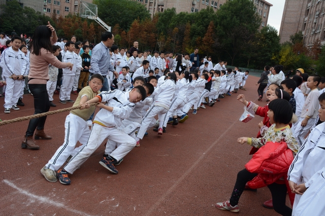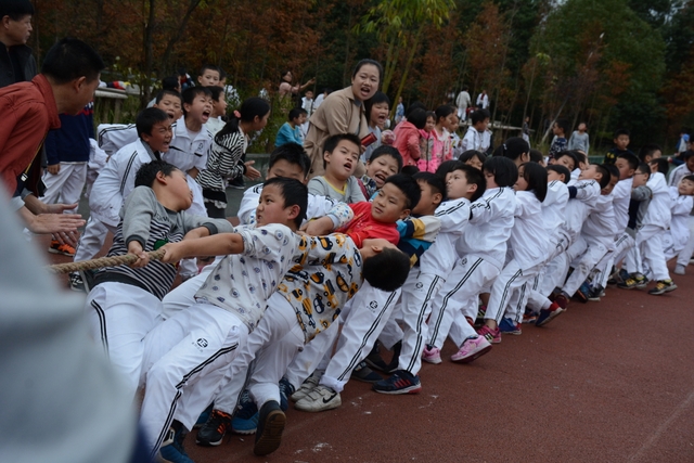 当比赛的哨声一响,队员们双手紧握长绳,憋足了劲往后拉,班主任也在队伍旁边助阵加油,班级内剩余的同学们自发组成啦啦队,为本班人员加油。哨子声,呐喊声此起彼伏,响彻云霄。