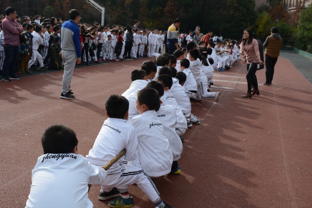 经过昨天全体13个班级的初赛,趁着天气晴好,11月28日下午,四年级进入复赛的七个班级进行了决赛。