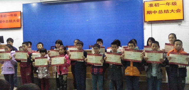 等待的时光是漫长的,所以我们将最激动人心的表彰仪式放在大会第一项。曹主任首先就这次期中考试获得的成绩做出了总结,为这次考试的前100名、单科状元以及班级的进步之星、守纪之星颁发奖状。一个又一个的名字响起,会场应和着一阵阵的掌声与欢呼声,孩子们的脸上洋溢着绚烂的笑容。世界上最快乐的事莫过于自己的付出获得了回报,但正所谓“见贤思齐焉,见不贤而内自省也”,台上一个个年幼却激情四射的面庞不正是最好的榜样吗?获得成功,需竭尽全力。