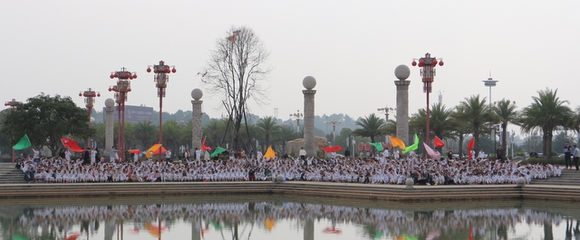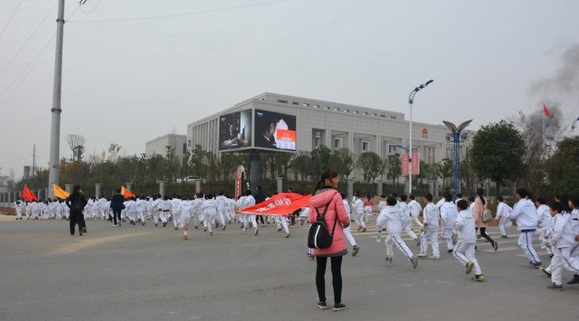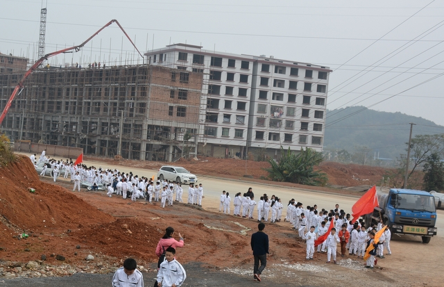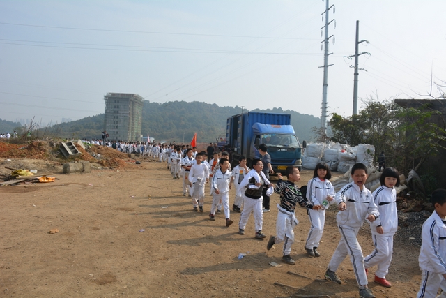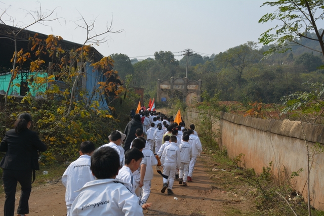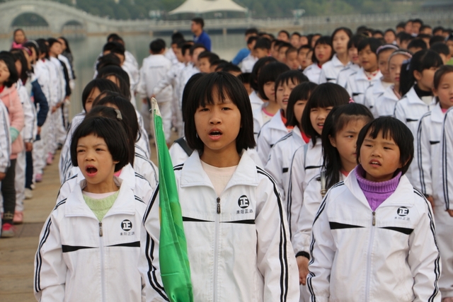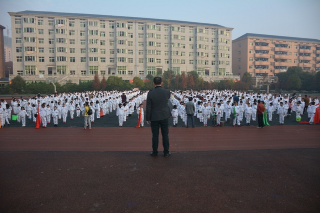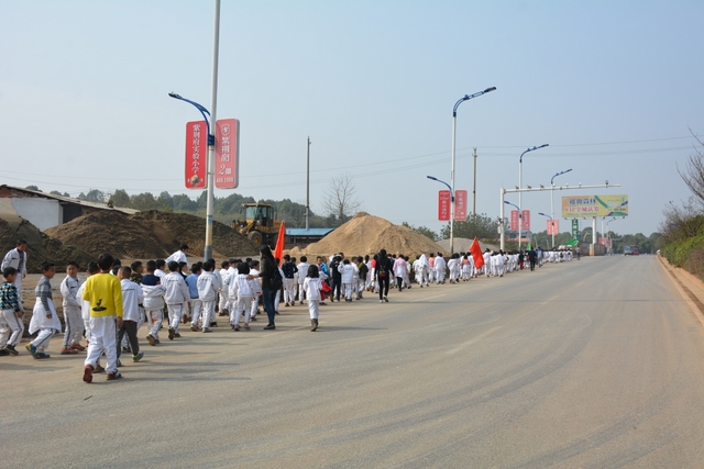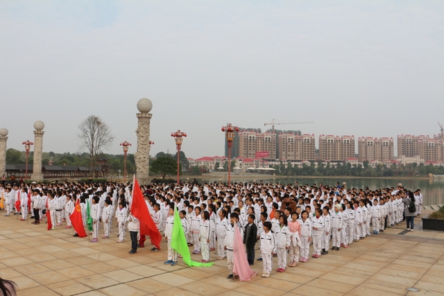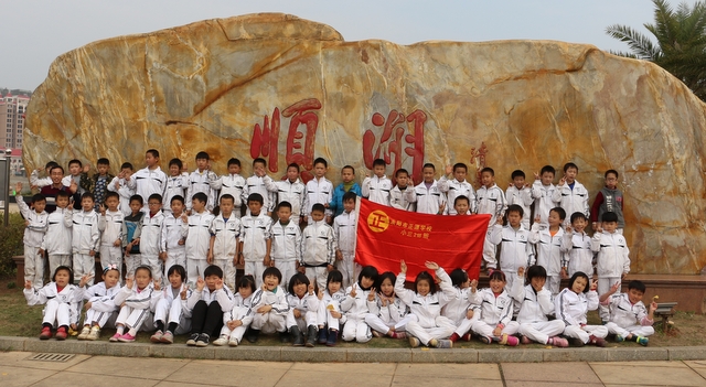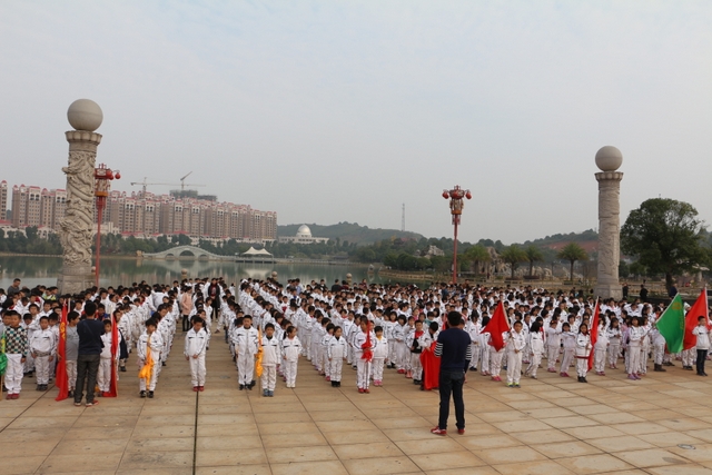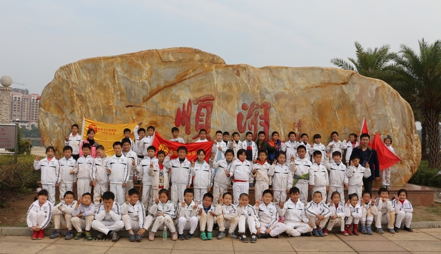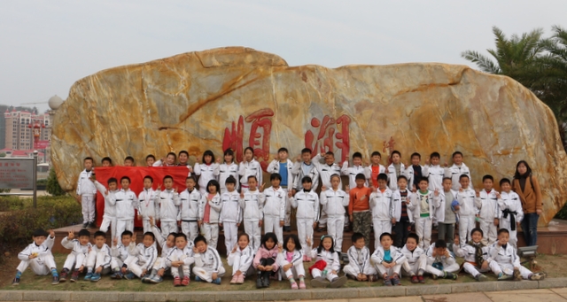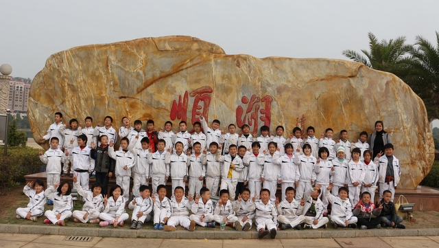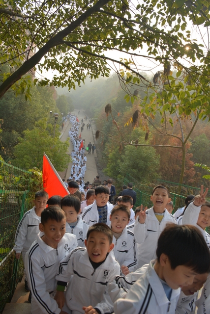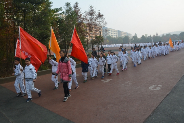 12月6日,晴空万里,暖阳高照。早餐后,小学部运动场便彩旗飘飘,四年级七百多名学生身着白色校服,齐聚运动场,准备开始他们欢欣鼓舞的冬游远足活动,目标——十多公里外的顺湖。