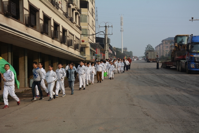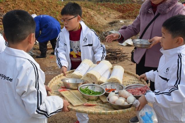 四年级年级主任阳明权首先宣讲了注意事项,小学部学部主任罗俊豪就相关事项作了进一步强调。8点20,一条长龙浩浩荡荡出发,同学们兴高采烈。我们出西门,沿着迎宾大道往五里牌方向一直走到紫金府门口,再乘学校专车经过最繁忙的107国道路段,到武园路口下,学生继续走路,直达野炊地点——新法院后面的空地。这时已过十点半钟,正好可以开始野炊。学校后勤为每个班级准备了野炊的食材。同学们兴致高涨,领食材的,捡柴的,生火的,抬水的,垒灶的,忙得不亦乐乎,整个场面热闹而有秩序。