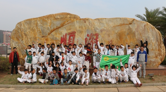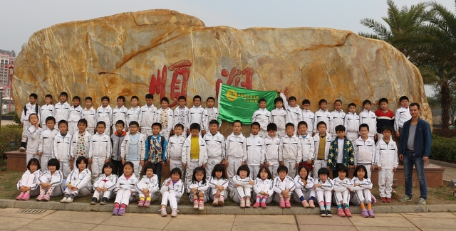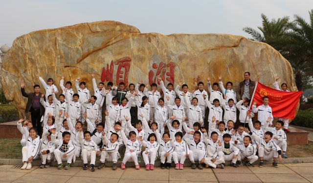 饱餐之后,我们带着学生沿着崎岖的山路向南岭仙出发,山路崎岖陡峭,但丝毫不影响孩子们爬山的热情。一路高歌,一路欢笑。不一会儿,便到达了南岭仙寺庙。孩子们参观寺庙,被寺庙的庄严肃穆所感染,见到菩萨,都虔诚地膜拜,并嘴里念念有词。一孩子偷偷告诉我:“我要菩萨保佑我学习进步。”在寺庙的空地,有些班级还表演了合唱、英文歌曲联唱、绕口令等节目。